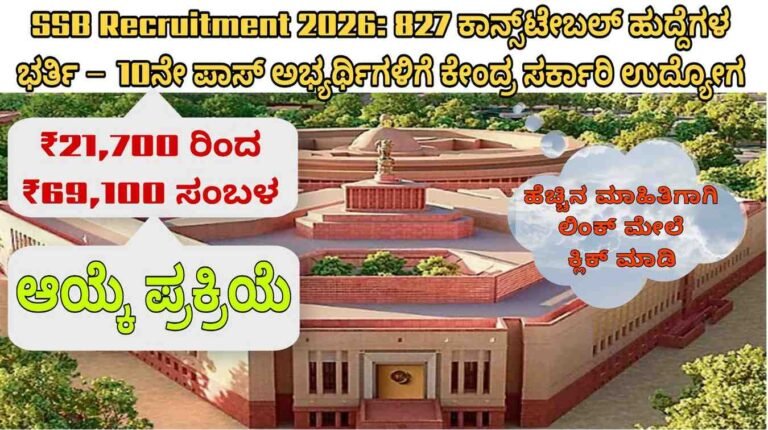 SSB Recruitment 2026: 827 ಕಾನ್ಸ್ಟೇಬಲ್ ಹುದ್ದೆಗಳ ಭರ್ತಿ – 10ನೇ ಪಾಸ್ ಅಭ್ಯರ್ಥಿಗಳಿಗೆ ಕೇಂದ್ರ ಸರ್ಕಾರಿ ಉದ್ಯೋಗ ಅವಕಾಶ ಕೇಂದ್ರ ಸರ್ಕಾರದ ಉದ್ಯೋಗಕ್ಕಾಗಿ ಕಾಯುತ್ತಿರುವ ಯುವಕರಿಗೆ …