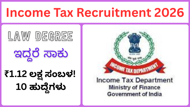 Income Tax Recruitment 2026 😲 ₹1.12 ಲಕ್ಷ ಸಂಬಳ! 10 ಹುದ್ದೆಗಳು – Law Degree ಇದ್ದರೆ ಸಾಕು, ಅರ್ಜಿ ಶುರು 🔥 Income Tax …