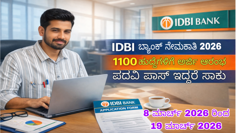 IDBI ಬ್ಯಾಂಕ್ ನೇಮಕಾತಿ 2026: 1100 Junior Assistant Manager ಹುದ್ದೆಗಳಿಗೆ ಅರ್ಜಿ ಆಹ್ವಾನ ಆಗಿದೆ ಬ್ಯಾಂಕಿಂಗ್ ಕ್ಷೇತ್ರದಲ್ಲಿ ಸರ್ಕಾರಿ ಉದ್ಯೋಗ ಪಡೆಯಲು ಕಾಯುತ್ತಿರುವ ಅಭ್ಯರ್ಥಿಗಳಿಗೆ ಮಹತ್ವದ …