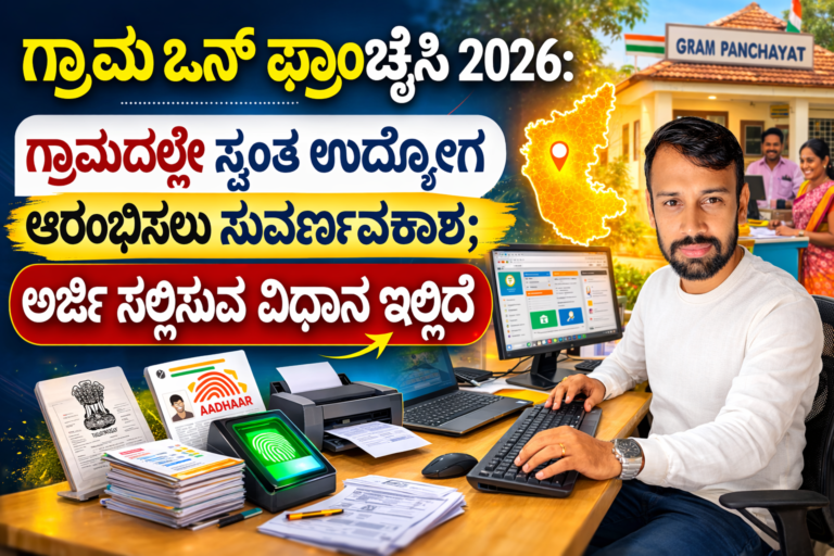 Grama one Franchise 2026: ಗ್ರಾಮದಲ್ಲೇ ಸ್ವಂತ ಉದ್ಯೋಗ ಆರಂಭಿಸಲು ಸುವರ್ಣಾವಕಾಶ; ಅರ್ಜಿ ಸಲ್ಲಿಸುವ ವಿಧಾನ ಇಲ್ಲಿದೆ ಕರ್ನಾಟಕ ಸರ್ಕಾರವು ಗ್ರಾಮೀಣ ಪ್ರದೇಶಗಳಲ್ಲಿ ಸರ್ಕಾರಿ ಸೇವೆಗಳನ್ನು ಸುಲಭವಾಗಿ …